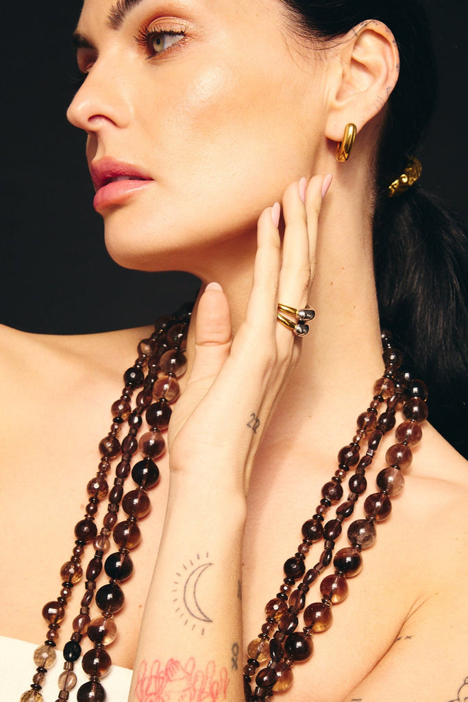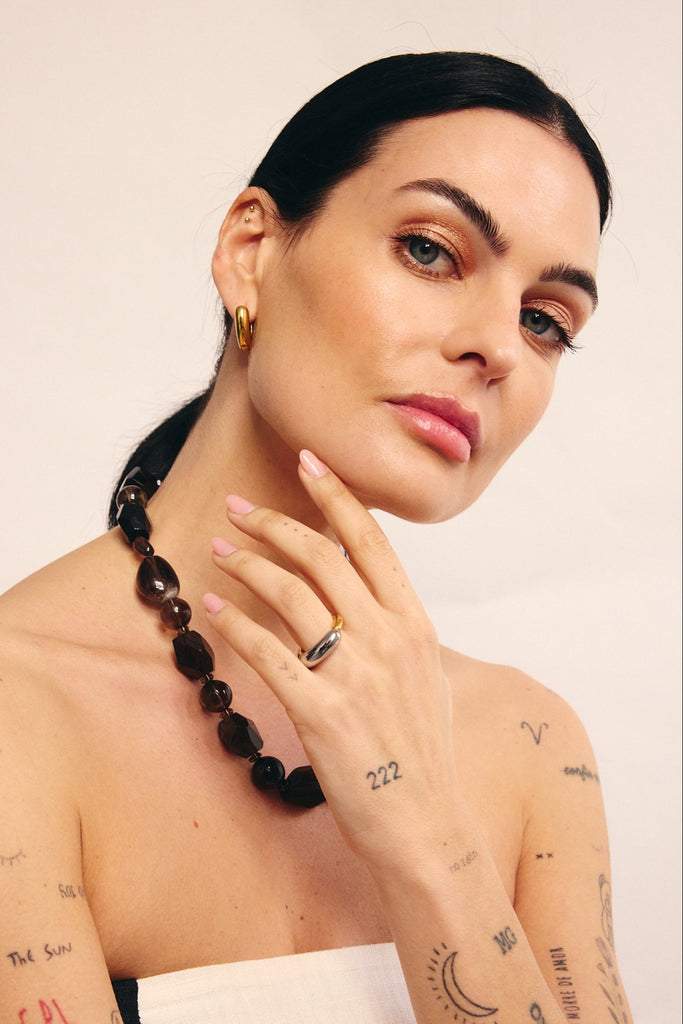 Anel bicolor dourado e prateado.