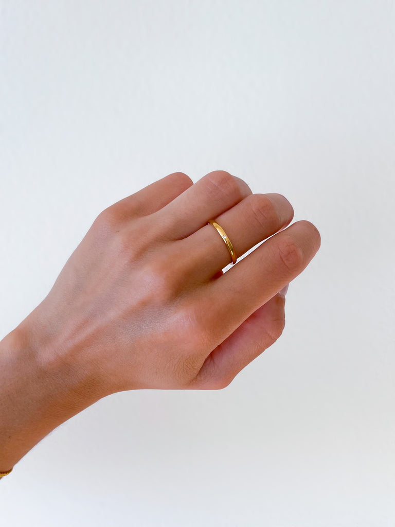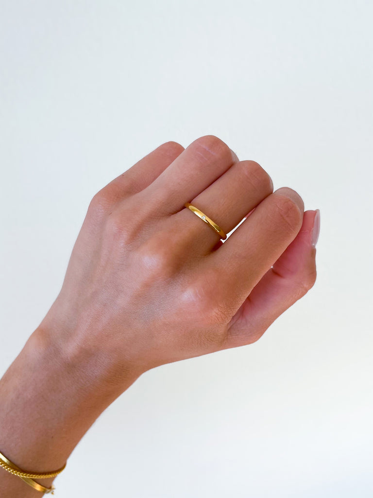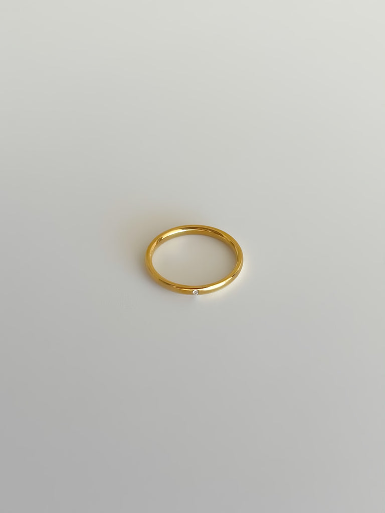 Anel com pormenor zircónia branca.