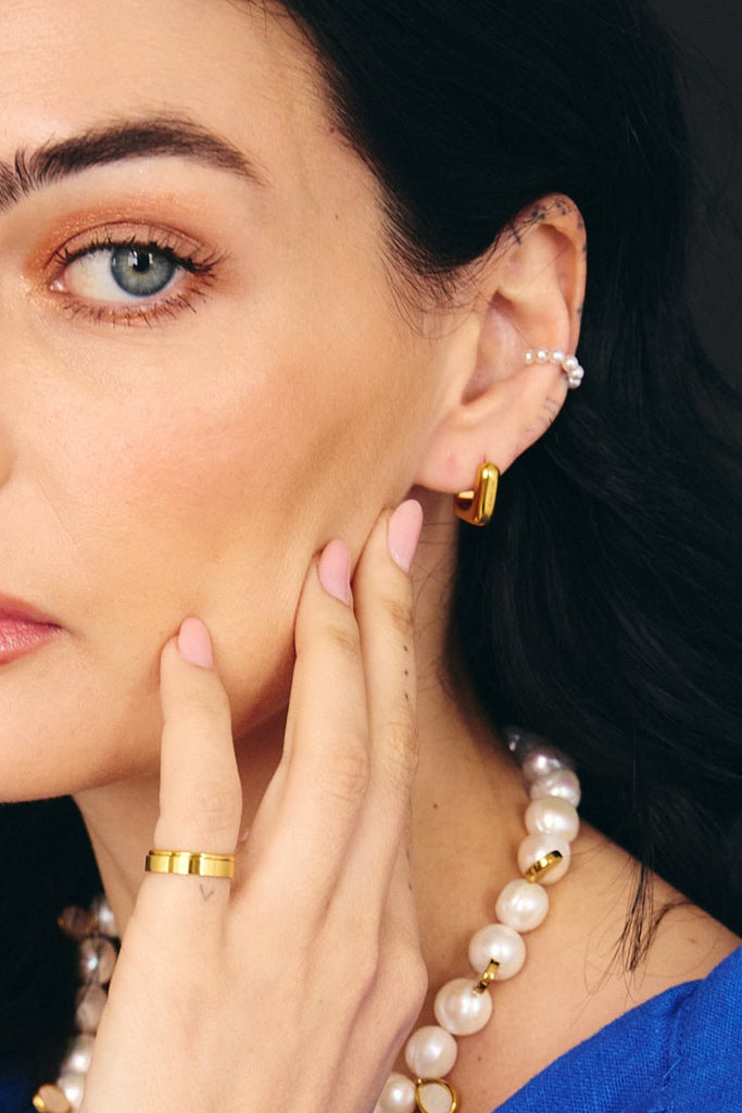 Anilha ajustável com pérolas de acrílico.