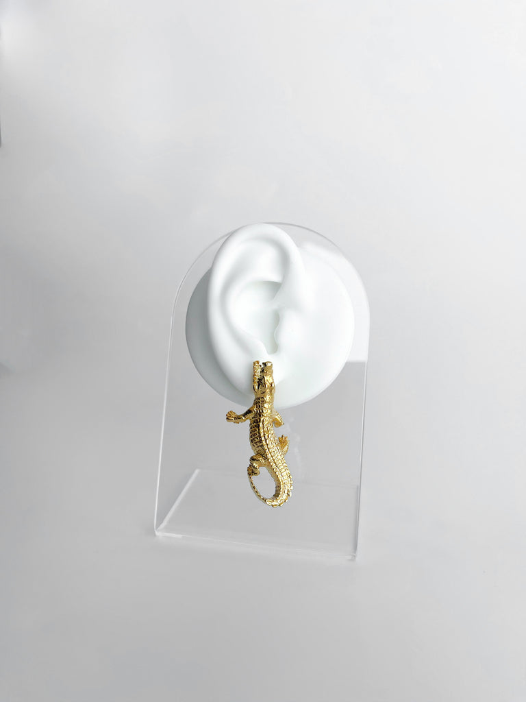 Brincos com a forma de crocodilo.